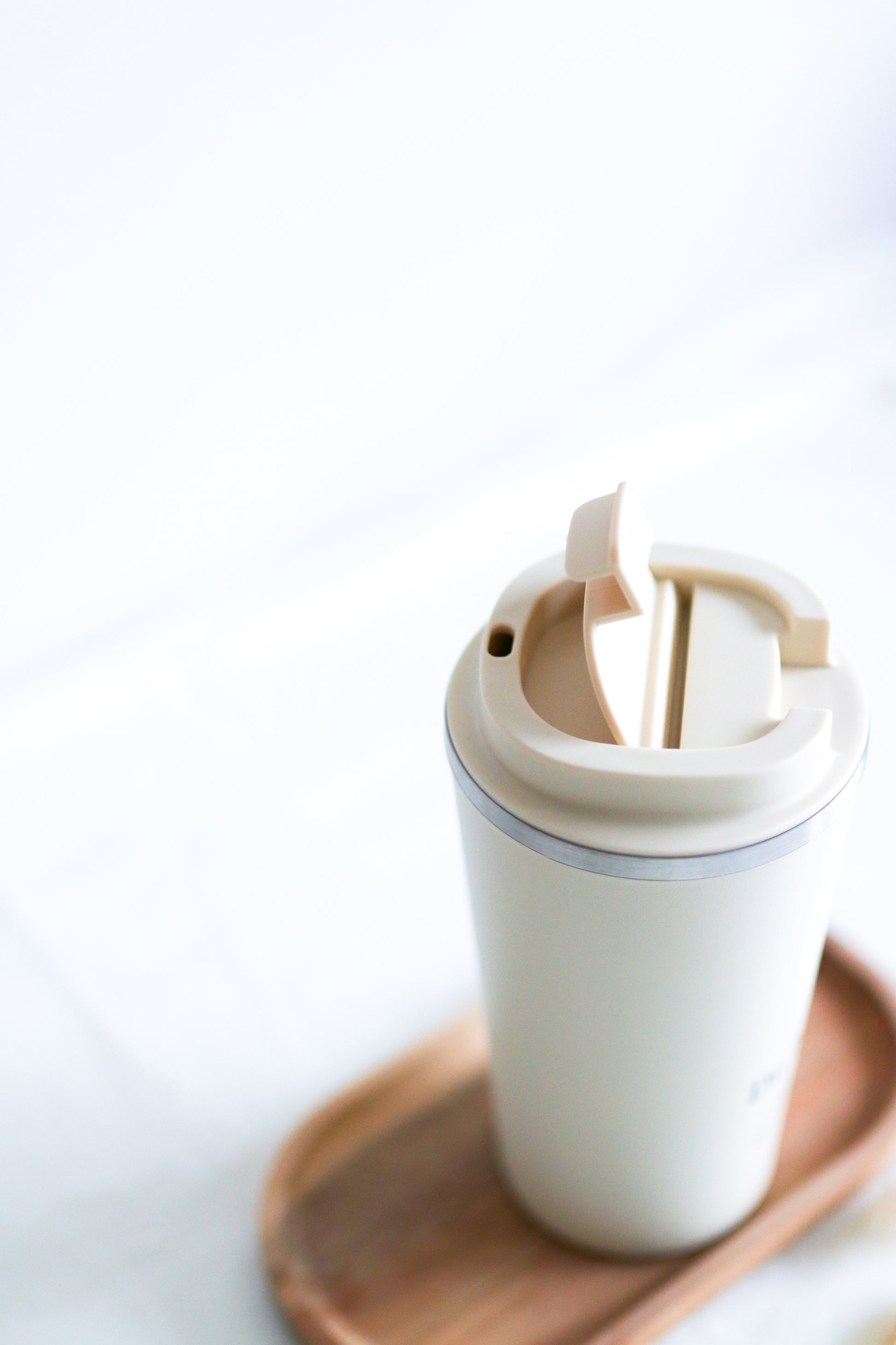 Doppelwandiger Trinkbecher aus Edelstahl mit PP-Deckel. Auslaufsicher.